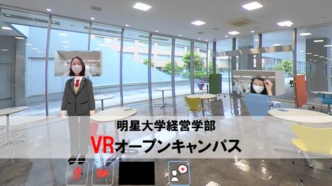 リアルなオープンキャンパスで好評だったコンテンツをそのままVR会場で実現しました。ビデオ会議システムや従来型のWEBオープンキャンパスでは得られない「イベント会場に参加してきた」「先輩学生と話をしてきた」など参加感や没入感を体験できます。7月の予約申込みも開始しましたので、くわしくは経営学部オリジナルサイトのお知らせをご覧ください。