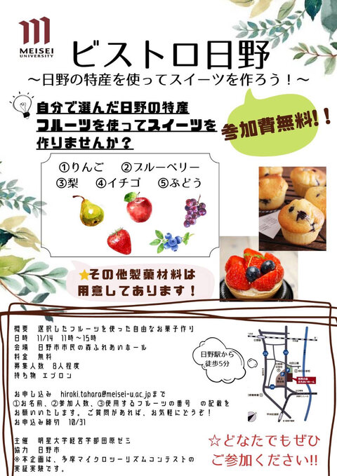 企画③-ビストロ日野~日野の特産を使ってスイーツを作ろう!~