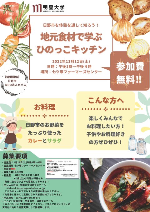 明星大学(東京都日野市)経営学部経営学科 田原ゼミ(田原洋樹 特任教授)では、多摩地域マイクロツーリズムプロジェクトが実施する「タマリズムコンテスト」に3件の企画を応募。日野市の観光まちづくりに向けたマイクロツーリズム企画として、3案すべてが1次審査を通過しました。