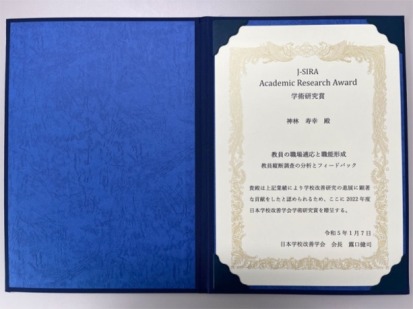 教育学部教育学科の神林寿幸常勤准教授が共同研究で刊行した図書が、2022年度日本学校改善学会学術研究賞を受賞しました。この賞は、学校改善研究の進展に顕著な貢献をしたと認められる業績に対して贈呈されるものです。 受賞図書 『教員の職場適応と職能成長-教員縦断調査の分析とフィードバック-』 ジアース教育新社、2021年 川上泰彦(兵庫教育大学)編著 共同執筆:榎景子・妹尾渉・梅澤希恵・波多江俊介・橋野晶寛・町支大祐・神林寿幸・當山清実・網谷綾香