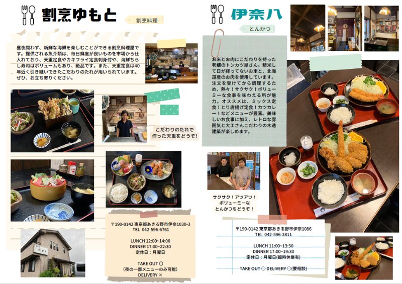 JR五日市線武蔵増戸駅周辺の計10店舗に学生自身が足を運び取材して仕上げたマップは、これまでに新聞折り込みであきる野市と檜原村内に19,200部が配布されたほか、五日市線沿線の各駅やあきる野市内の主要箇所に設置されています。また若者世代や観光客を五日市線へ呼び込むツールとして、中央線の立川駅、国分寺駅、三鷹駅にも設置される予定です。