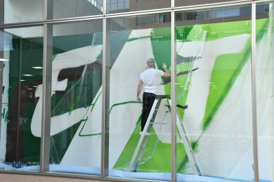 壁画の制作に取り組むSmetsky氏