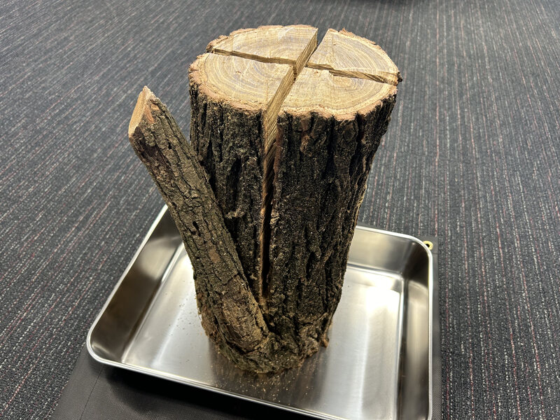 経営学部の大森 寛文教授ゼミでは、2023年9月より日本の森林資源、木材ビジネスの生産・流通過程やスウェーデントーチの市場動向等の調査を行っており、今回の取り組みを企画しました。当日は、樹木の品種やサイズが異なるスウェーデントーチを用意し、品種やサイズの違いによる調理最適温度までの所要時間等について検証を行います。なお、今回の検証で使用するスウェーデントーチは、理工学部の齊藤 剛教授の指導のもと、学内で伐採された樹木を使用して学生が製作しました。