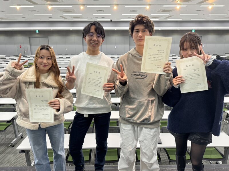 予選と本選を勝ち抜いた最優秀グループのメンバー(左から吉川奈緒さん・村山輝さん・福岡雅也さん・原彩夏さん)
