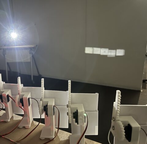 本作品は、窓の機能を拡張し風の動きを光として室内に取り込む作品である。外部に風速計を設置し風量を測定する。測定された風量に応じて窓ガラスをモチーフにしたパネルが傾く。パネルにはダイクロイックフィルムが貼られており、日光が当たると室内に透過光が差し込まれる。風の動きを光として室内に取り込み、自然のゆらぎを室内に取り入れる。