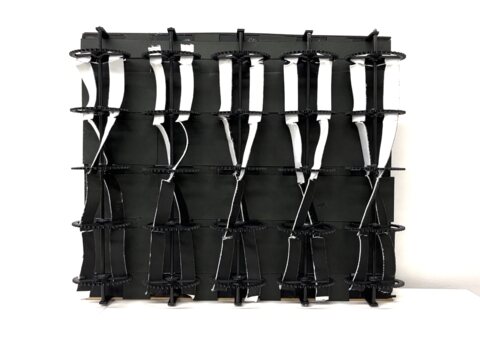 本研究では、平行に配置した2本の紐とギア機構によるねじりを利用し、素材の色の変化によって情報を表示するディスプレイを提案する。ギアにより平行の2本の紐をねじり交差させることで、紐の表裏が反転し背面側の色が表示される。反転および並行したゴム紐を1つのピクセルとすることで情報を表示する手法を提案する。
