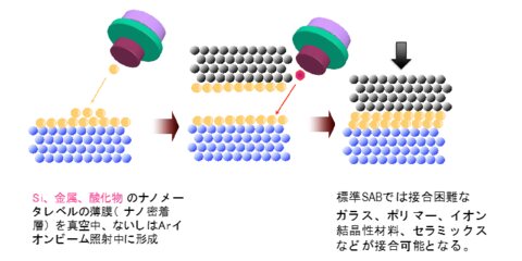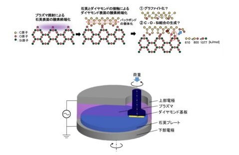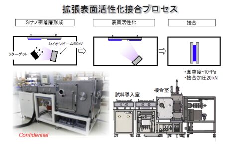 - その結果、ダイヤモンドウエハと、窒化ガリウムウエハや圧電単結晶ウエハなど異種半導体ウエハとの常温接合を達成。