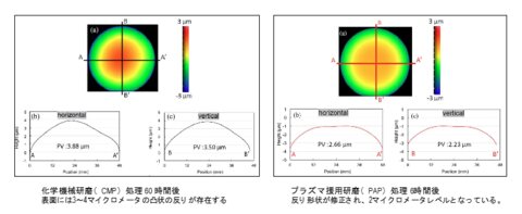 - 新たに開発したプラズマ援用研磨(PAP)とガスクラスターイオンビーム(GICB)加工を組み合わせることにより、2インチのダイヤモンドウエハの超平滑化加工を高効率で実現することに成功。