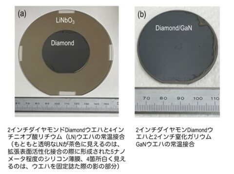 これまでも、ダイヤモンドと窒化ガリウムとの接合技術は知られておりましたが、ダイヤモンドの研磨が難しいため、いずれもミリメータサイズの小片の接合にとどまっていました。