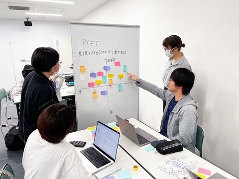 アイデアを出し合う学生たち