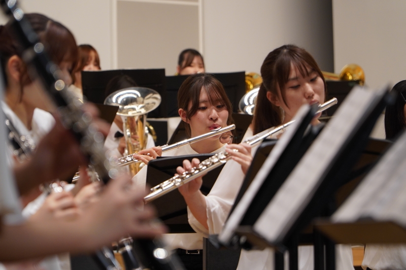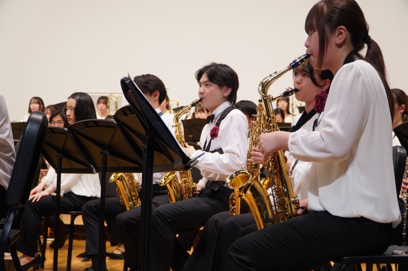 第1部では、玉寄勝治音楽監督の指揮のもと、「鷲の舞うところ」など吹奏楽の定番曲を中心としたプログラムが披露されました。第2部では、学生たちが主体となって選曲した「名探偵コナン メインテーマ」など、親しみやすい楽曲が演奏され、会場を盛り上げました。