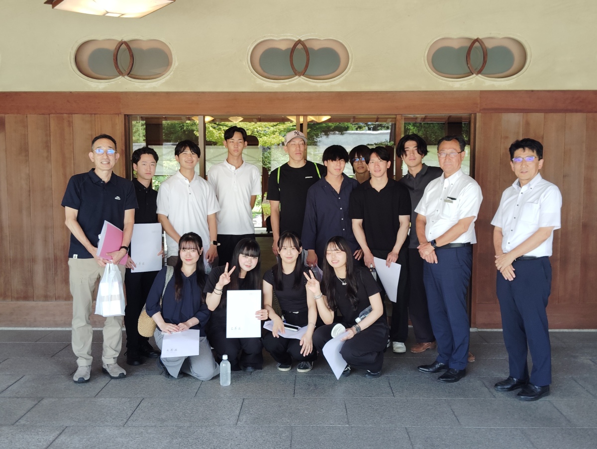 第1期生3年生の13名は、実践的研究の場として静岡県伊豆の国市に位置する伊豆長岡温泉をゼミ合宿地として選定し、2025年9月1日から2泊3日のスケジュールで合宿を行いました。この合宿の中では、伊豆の国市に対して観光による地域振興策を提案した他、伊豆長岡温泉を代表する名旅館「三養荘」や世界遺産「韮山反射炉」など市内の観光資源を視察し研究への理解を深めました。