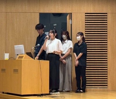 まず1つ目の教員賞(桜美林・岩垂賞)は、「HiGO」<リーダー:高野陽茉里さん、サブリーダー:尾形晟堂さん、メンバー:神谷さくらさん、栗原ななさん、横倉寛人さん(当日欠)>でした。また、2つ目の教員賞(二松学舎・小久保賞)は、「バナナ」<リーダー:大囿侑己さん、サブリーダー:重森美玲さん、メンバー:伊藤怜生さん、杉原明斗さん、清野遥菜さん>でした。また、「COMPLEX」<リーダー:渡邉一喜さん(当日欠)、サブリーダー:瀧澤裕希さん、メンバー:金沢海都さん、新井綾夏さん>は惜しくも受賞できなかったですが、1番最初の順番で、欠席者もいる中、参加チーム最少人数での発表を果敢に行いました。