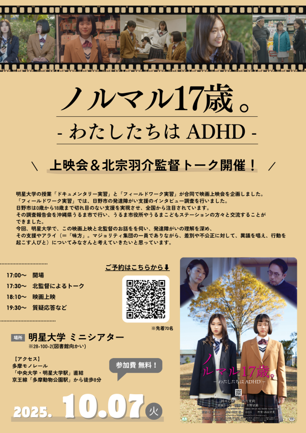 映画「ノルマル17歳ーわたしたちはADHD」上映会+北宗羽介監督トーク