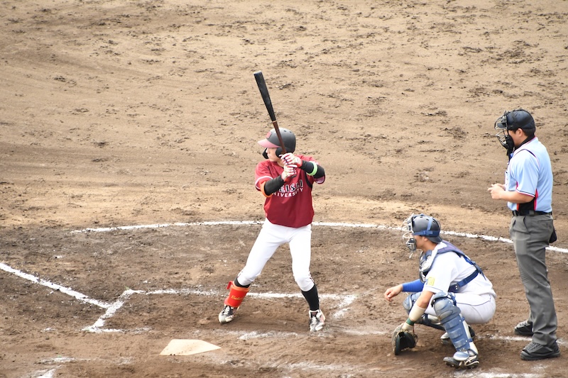8回には、菊井力空(経済学部経済学科3年・国士舘)が右中間に二塁打を放つも、終わってみれば散発の3安打にとどまり、城西大学先発投手の前に封じ込まれました。