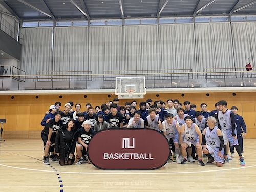 試合中は、男子籠球部の学生が学年ごとに応援し、コートサイドには笑顔や拍手が広がり、世代を超えた一体感に包まれていました。試合後には、学生が各チームから活躍したプレーヤーを選び、「MU賞」として表彰を実施。本来は「学生から感謝や敬意を伝える場」であるはずが、表彰後には“人生の先輩”にあたる参加選手から、競技への向き合い方や挑戦を続ける姿勢、一緒にスポーツを楽しむ仲間の存在の尊さなど、温かく胸に響くメッセージが寄せられました。