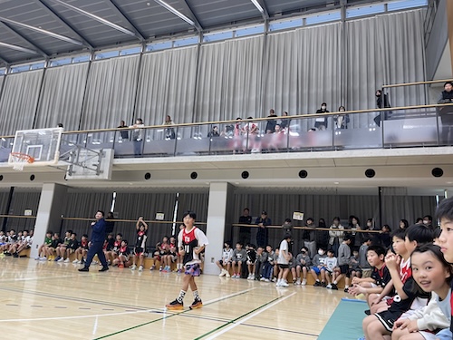 さらに、1on1チャレンジや選抜チームと大学生によるエキシビションマッチも実施され、選手たちにとって「大学生と同じコートに立つ経験」は特別な時間となりました。試合を終えた選手からは、「大学生に教えてもらえて嬉しかった」「もっと上手くなりたい」といった声が聞かれ、学生にとっても、自分たちの競技経験が次の世代の挑戦につながっていくことを実感する機会となりました。