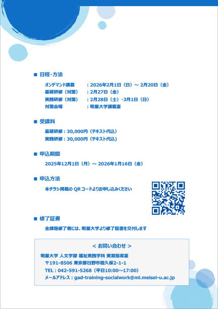 E-mail:gad-training-socialwork@ml.meisei-u.ac.jp