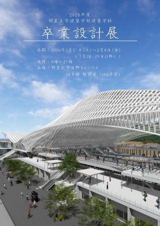建築学部では、2026年1月21日(水)~2月8日(日)(1月28日(水)・29日(木)除く)の期間で、2025年度 卒業設計展を明星大学日野校にて開催します。