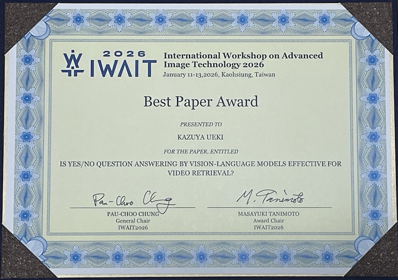 2026年1月、台湾(高雄)において開催された先端画像技術に関する国際ワークショップThe International Workshop on Advanced Image Technology (IWAIT) において、植木一也准教授と尼岡研究室所属の博士課程1年 清水海人さんが口頭発表を行いました。