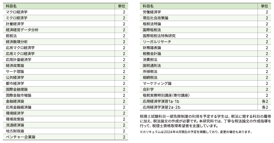 応用経済学専攻 予定されるカリキュラム