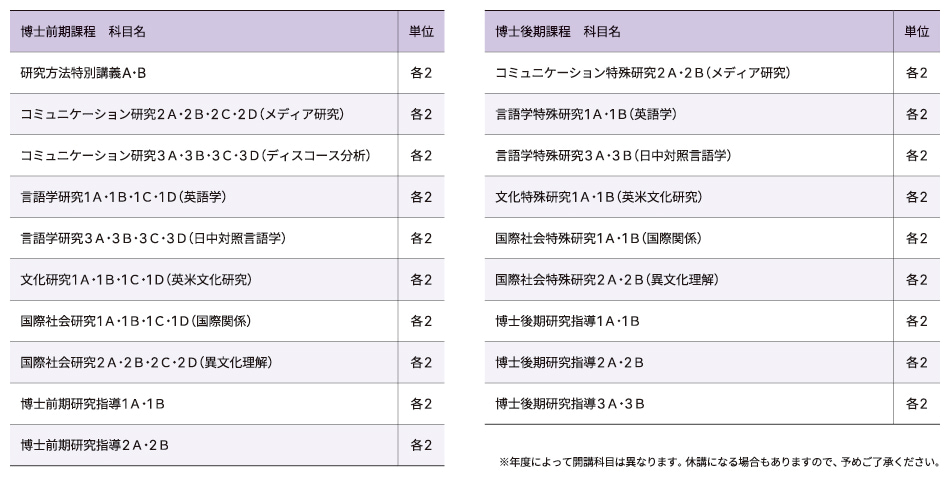 ※年度によって開講科目は異なります。休講になる場合もありますので、あらかじめご了承ください。