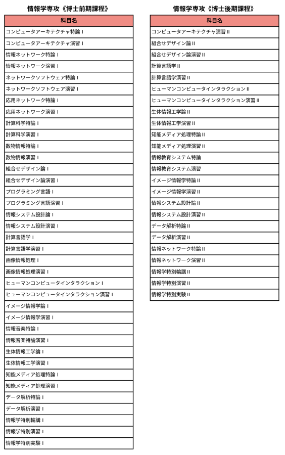 情報学専攻 予定されるカリキュラム