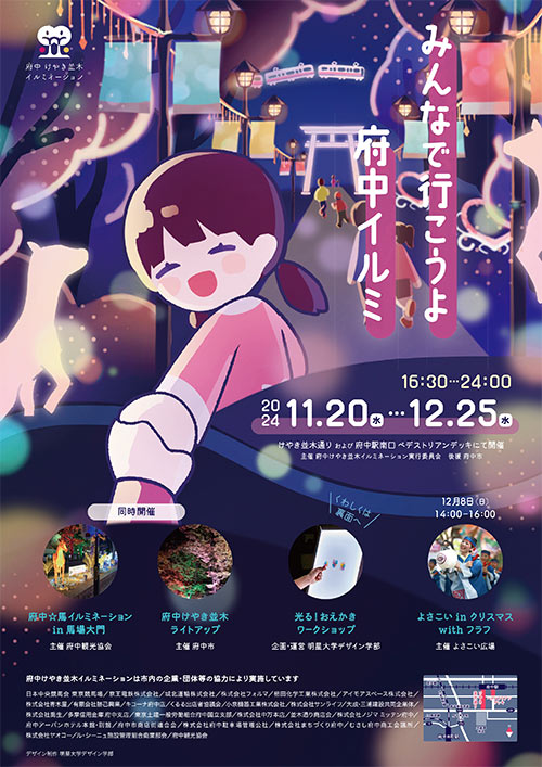 「府中けやき並木イルミネーション」実行委員会よりデザイン学部の学生を対象にポスターとワークショップの公募が行われました。