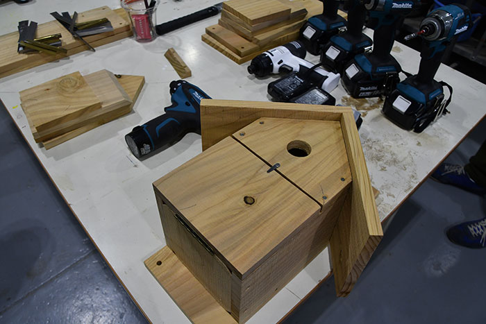 その後、デザイン学部の塩野 麻理教授による陶器の鳥の皿づくりと木工デザイナーの大沼 勇樹氏による木のバードハウスづくりのワークショップが行われ、参加した子どもから大人まで幅広い世代の方がイベントを楽しんでいました。